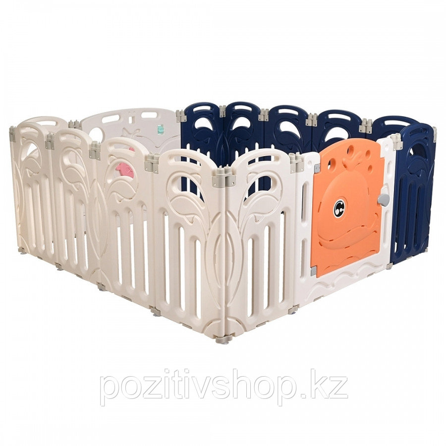 Детский манеж-ограждение с яркой игровой панелью и дверцей состоит из 14 секций. Игровой комплекс прочный и устойчивый, не требует сборки/разборки. Не требует специального инструмента для сборки.